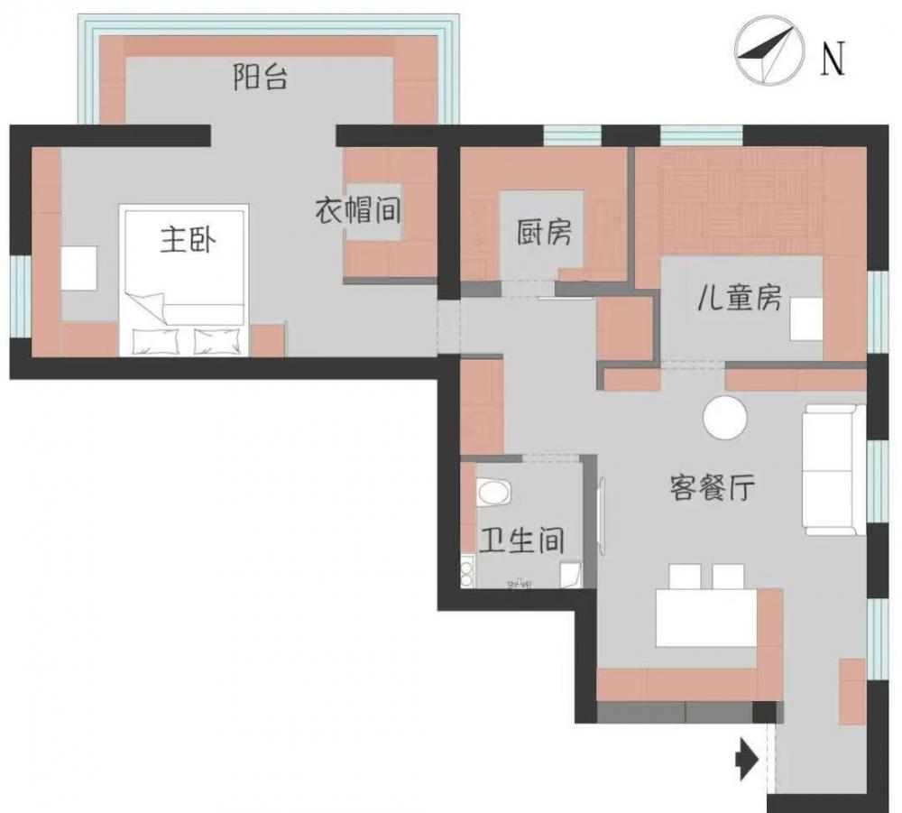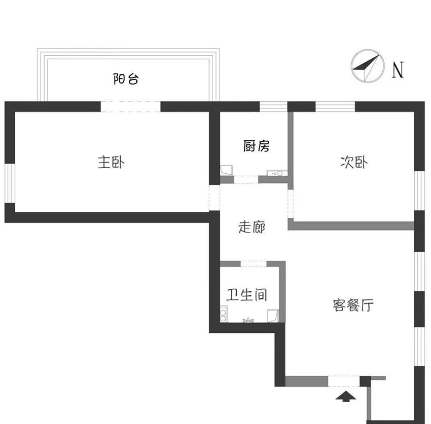 今天這個(gè)家,是我看過整屋裝修案例中,收納規(guī)劃做得最好的一個(gè)。毫不夸張地講,66㎡的使用面積,儲(chǔ)物空間可以“摳到”1cm,完全不輸大戶型。 本期,為大家分享的家裝案例,是一套使用面積約66㎡的小兩居。屋主是一家三口,為了工作和孩子上學(xué),在寸土寸金的北京買下了這套小房子。原戶型的裝修陳舊,且空間利用率低,為了提升居住的舒適性,屋主決定重新裝修。 //戶型分析// ①整屋使用面積約66㎡,格局幾乎和方正二字搭不上邊。 ②全屋共兩間臥室,都屬于西南朝向,采光不太好。 ③入戶無獨(dú)立玄關(guān),私密性較差。 ④客餐廳的面積很小,使用起來會(huì)比較局促。 //設(shè)計(jì)亮點(diǎn)// ①調(diào)整入戶門方向,做一體式玄關(guān)柜加餐邊柜。 ②全屋收納空間化零為整,都做頂天立地的設(shè)計(jì)。 ③廚房借用一部分兒童房面積,增大使用空間,實(shí)現(xiàn)U型布局。 ④臥室新建輕體墻,用來規(guī)劃衣帽間。