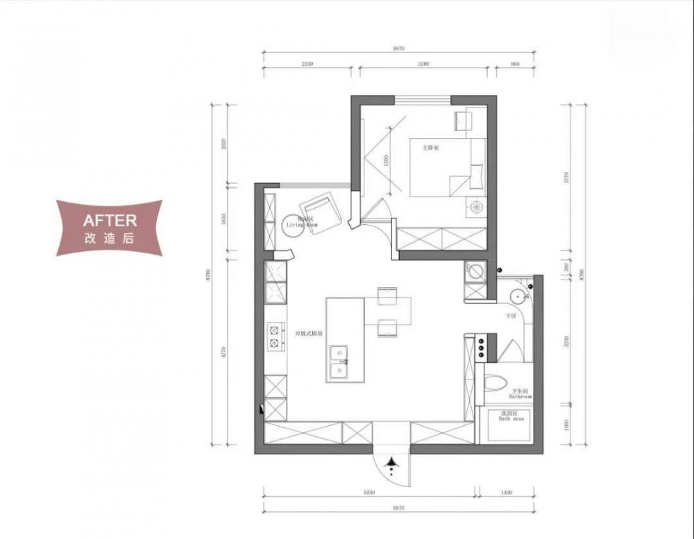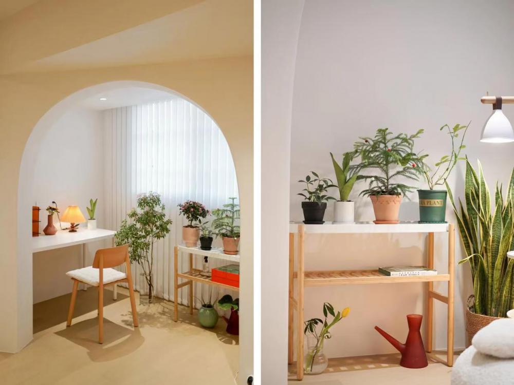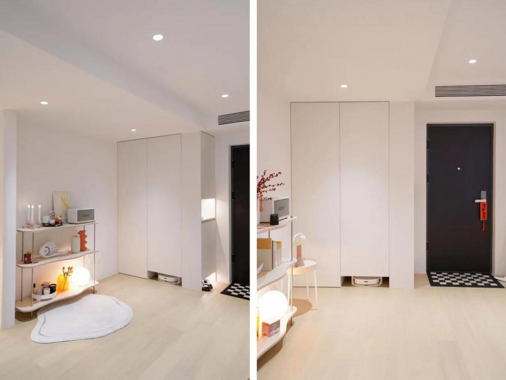 誰說家就要以客廳為中心去展開布局規(guī)劃?對于小戶型來說,沒有客廳的體驗感也是一樣棒,主要在于整體的利用。 本期要分享的是一對熱愛生活的夫妻,這是兩人第一次裝修房子,用來平時的娛樂,雖然面積不是太大,只有60㎡,但還是夢想自己需要的功能都可以滿足,而且希望室內(nèi)空間盡量不顯局促又能夠明亮溫馨,色彩舒適,讓人進去就有一種治愈感。 兩個人的秘密基地,當(dāng)然要以放松為主,這樣才能短暫的逃脫外界,擁抱快樂了! 戶型分析: 公共區(qū)域整體采光不夠,空間狹長不通風(fēng); 入戶沒有玄關(guān)和換鞋區(qū); 客餐廳在同一區(qū)域,沒有明顯的劃分; 整個戶型的可儲物區(qū)域較少。 方案優(yōu)化: 入戶兩側(cè)增加柜體,換鞋和掛衣都有了位置; 開放式廚房設(shè)計,壓縮了傳統(tǒng)客廳的概念; 將非承重墻體打掉,公共區(qū)域更寬敞; 陽臺和衛(wèi)生間外區(qū)域都納入室內(nèi)使用,增加室內(nèi)可用空間。