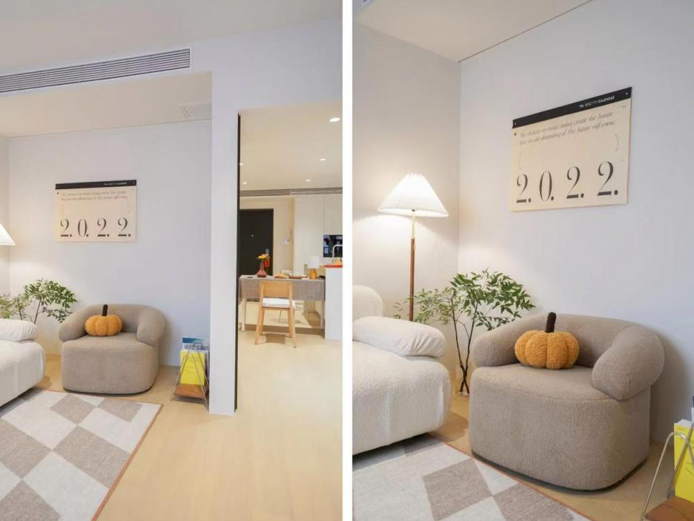 超美60㎡奶油風(fēng)小屋,去客廳化+餐廚一體,讓小家好住翻倍!真棒 一共( 10 )張圖