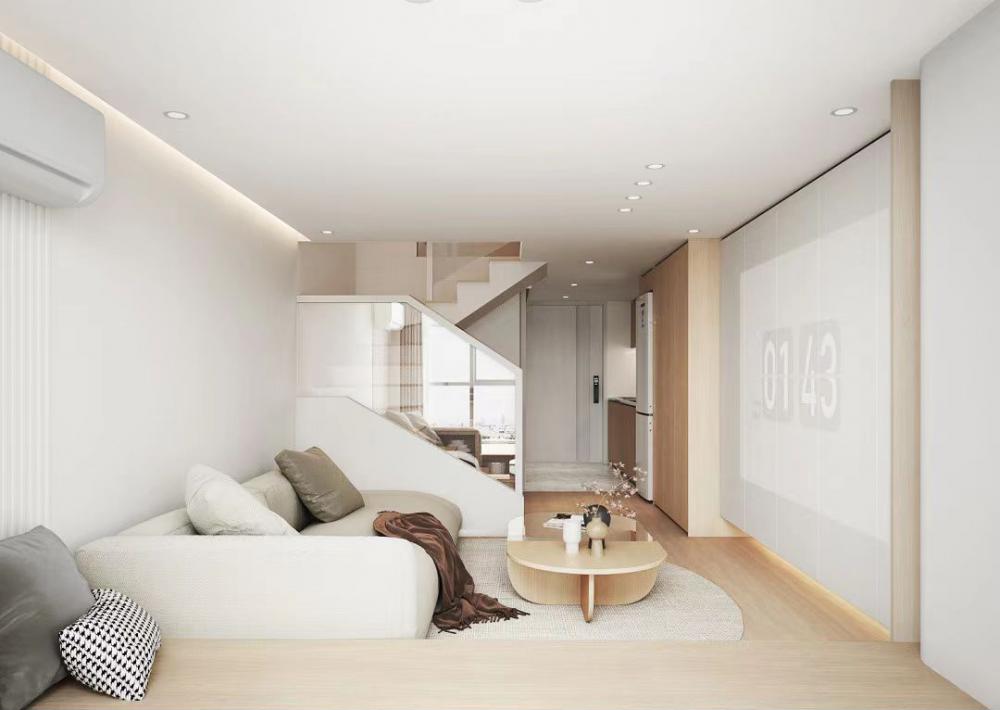 這套建面50平的房子是商住兩用的公寓房,在常見的loft小戶型中,4.9米的層高不算太低,做兩層結(jié)構(gòu)也不會顯得過于壓抑。屋主是兩個(gè)90后姑娘,彼此是發(fā)小的關(guān)系,她們有著相同的愛好,還選擇一起成為手作博主,為了兼顧生活與工作,姐妹倆攢錢買下了這套公寓。