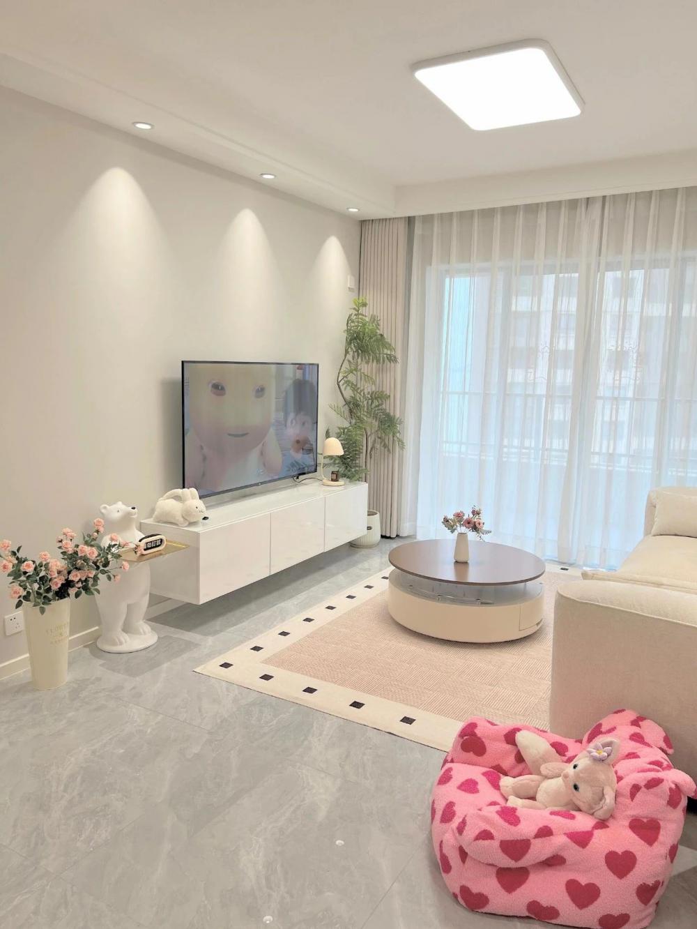 裝修時(shí)預(yù)算有限,秉著能省則省的原則,沒(méi)想到裝好以后盆友來(lái)了都說(shuō)~裝成這樣已經(jīng)很哇塞啦!?? - ??建面95平,套內(nèi) 75平 ?客餐廳一體的三室小戶(hù)型 ?風(fēng)格算是簡(jiǎn)約奶油風(fēng) - ??關(guān)于裝修思路?? 硬裝越簡(jiǎn)單,軟裝越好搭 1、客餐廳一體瓷磚通鋪通透又顯大 2、屋頂走一圈雙眼皮吊頂 3、全屋淺色墻通比大白墻顯溫馨 4、沒(méi)做任何復(fù)雜背景墻 5、小戶(hù)型就多做了收納柜來(lái)收納 軟裝則以奶油色系為主,奶油色的窗簾、地毯、??和茶幾,餐廳也選了奶呼呼的云?團(tuán)吊燈,再用一些擺件、裝飾畫(huà)和綠植點(diǎn)綴,一個(gè)溫馨舒適的小家就出現(xiàn)啦! 閑暇時(shí)光在家鋪上瑜伽墊,做做瑜伽??跳跳操太舒服愜意啦!