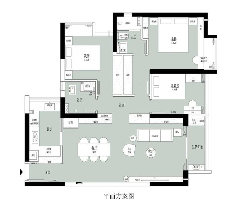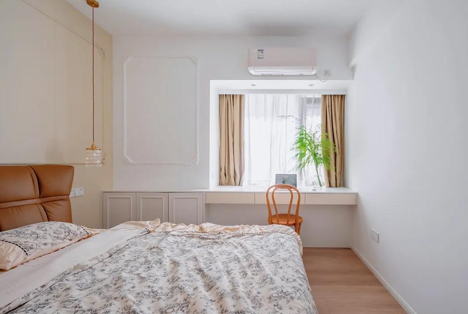 千家千態(tài),這個(gè)家除了視覺效果外還特別注重收納空間,但又不想過于滿,一個(gè)家還有一個(gè)重要的功能就是能治愈外面帶回來的疲憊感,給空間留一點(diǎn)松弛的呼吸感。家里整個(gè)氛圍就似其名“橘子汽水”一樣,色調(diào)溫馨又清爽 室內(nèi)整體色調(diào)是溫暖明亮的,現(xiàn)代輕法式風(fēng)格讓客廳清爽且優(yōu)雅。 黑色皮沙發(fā)與懸空電視柜顏色呼應(yīng),沙發(fā)不靠墻,輕洄游動(dòng)線更加通透且實(shí)用。 溫暖的色調(diào)包裹著整個(gè)空間,開放格與隱藏式收納,讓整個(gè)家美觀與實(shí)用兼得。 客餐廳保留了原頂?shù)恼麧?,不壓縮整體的空間高度。 餐廳定制到頂餐邊柜,奶白色的柜體,吊柜結(jié)合了圓拱長(zhǎng)虹玻璃元素,玻璃朦朧透光,再用金色小圓點(diǎn)把手點(diǎn)綴,讓實(shí)用的餐邊柜更添精致感。 原本的小生活陽臺(tái)拆除,增加廚房使用面積。廚房地面的花磚與莫蘭迪綠的地柜相應(yīng)成趣,營(yíng)造清新自然的廚房氛圍。 主臥利用飄窗的位置設(shè)計(jì)了辦公書桌區(qū),懸空的書桌占地面積為零,讓空間在視覺上更寬敞。 次臥床頭背景下半墻用勃良第紅撞奶咖色,用穩(wěn)重的黑色線條過渡,空間立體感很強(qiáng),優(yōu)雅經(jīng)典且充滿了藝術(shù)感。 兒童房把原來長(zhǎng)陽臺(tái)的一部分兼并進(jìn)來了,靈活的家具,讓房間隨著孩子成長(zhǎng)而變化。書桌后面是用軟木板結(jié)合黑板墻做了一個(gè)半墻高的造型,記錄孩子的成長(zhǎng),釋放孩子的天性。 衛(wèi)生間做了干濕分離,采用輕法式復(fù)古風(fēng),上墻是屋主喜歡的燕子花磚,干區(qū)地面是碰角小花磚點(diǎn)綴,簡(jiǎn)約素雅又充滿了復(fù)古藝術(shù)氣息。