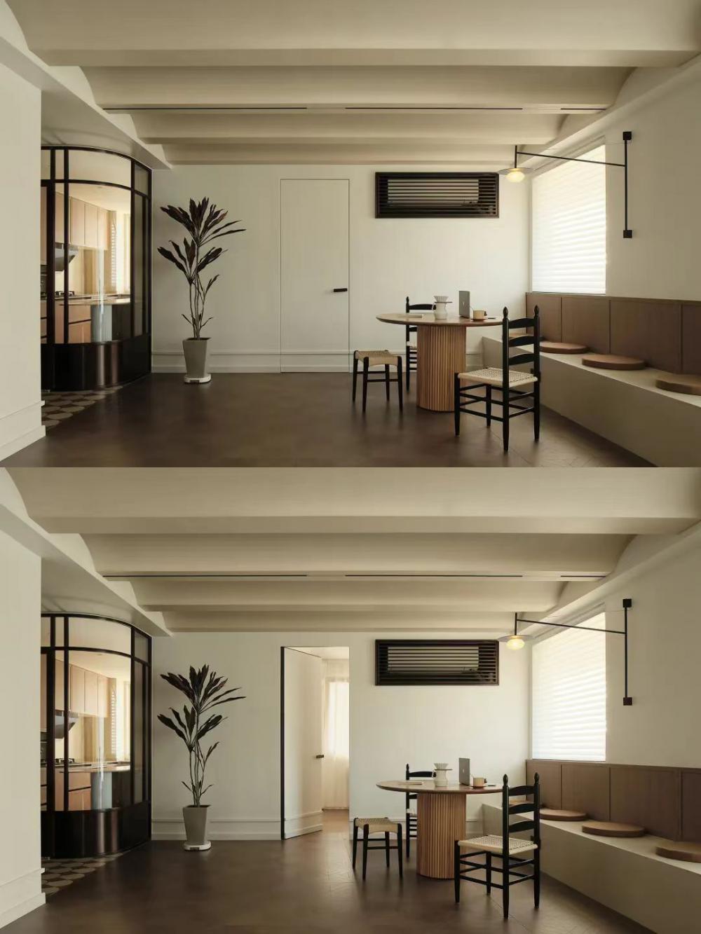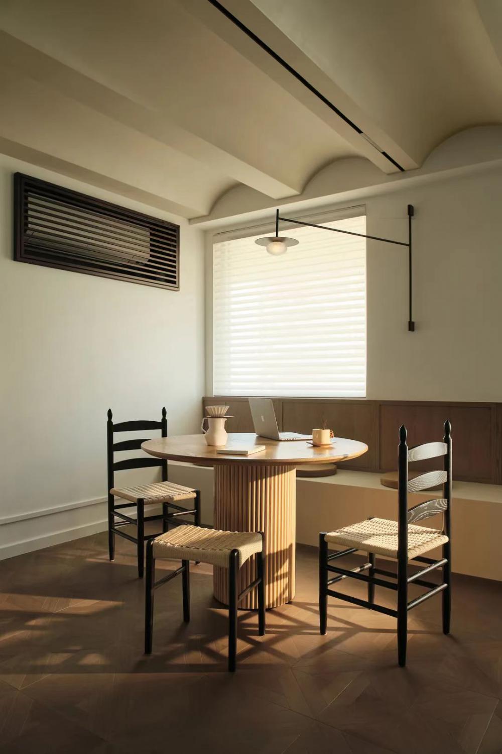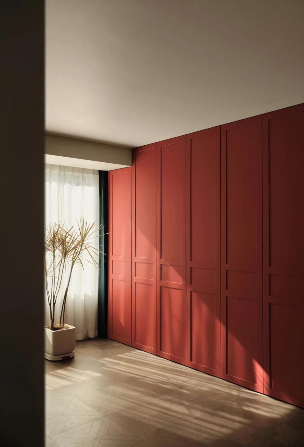 原戶型是比較中規(guī)中矩的剛需房結(jié)構(gòu), 119㎡三室兩廳一廚兩衛(wèi)。 優(yōu)點(diǎn)是空間利用率較高, 戶型方正且布局較為合理, 對(duì)于空間的需求不止于此, 追求通透感,喜歡豐富有趣的造型。 改造要點(diǎn)提示: 1、入戶區(qū)借用主衛(wèi)部分區(qū)域,打造步入式儲(chǔ)藏間,一站式解決鞋物收納; 2、三室改兩室,打通與主臥相連的次臥,形成一個(gè)寬敞舒適的酒店式套房,含衣帽間、書(shū)房、衛(wèi)生間; 3、客餐一體,布局隨性,空間寬敞愜意。 在打造咖啡屋般的復(fù)古氣質(zhì)之余, 所呈現(xiàn)的隨意慵懶感也是一大亮點(diǎn)- 餐廳卡座以及客廳的隨性布局, 處處體現(xiàn)著居家生活的精致愜意, 在這方不被打擾的小世界里, 可自在療愈,沉浸式放松與享受。