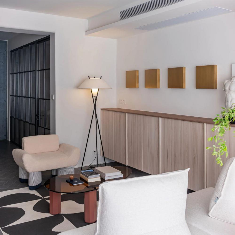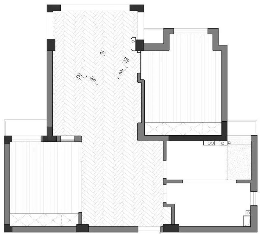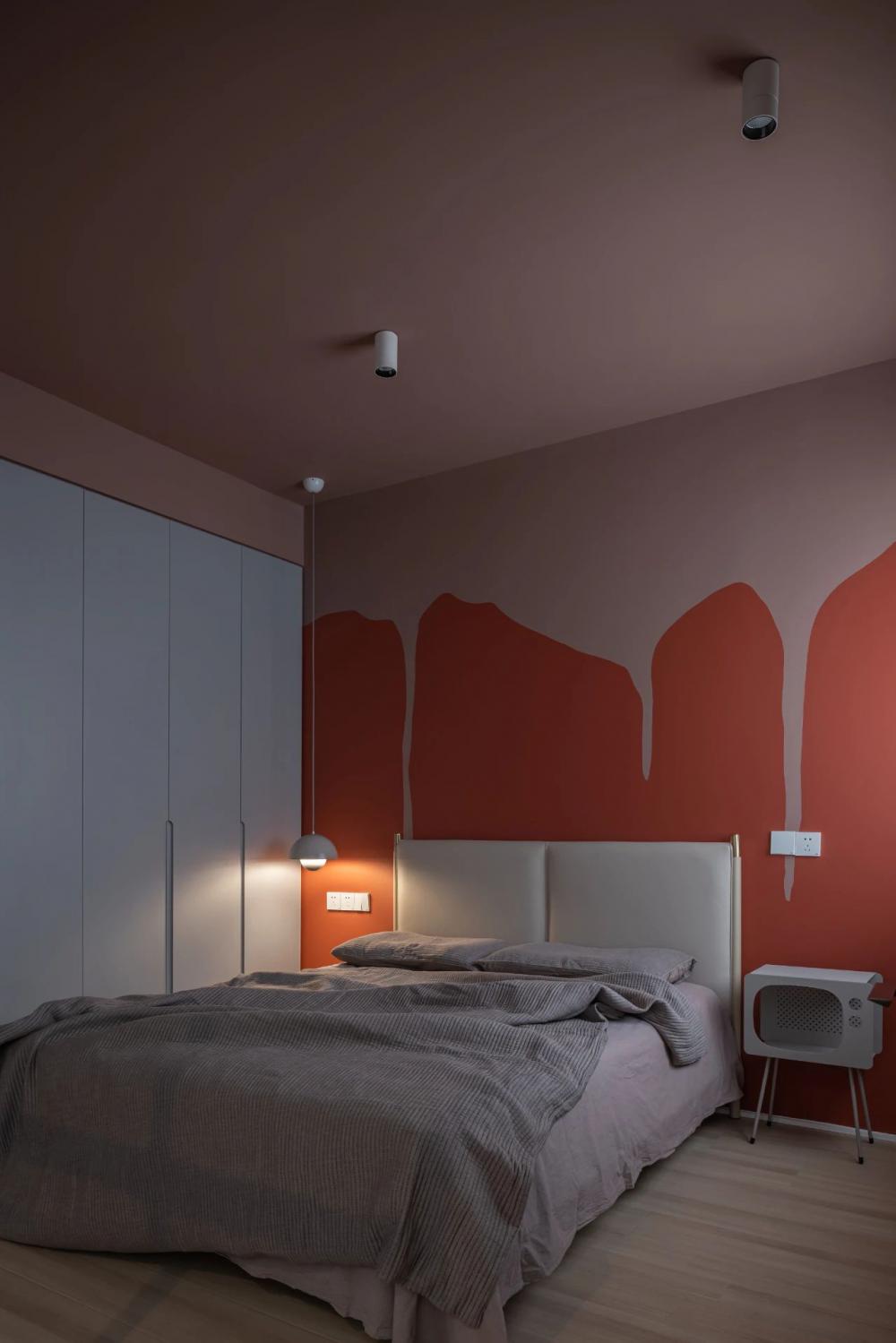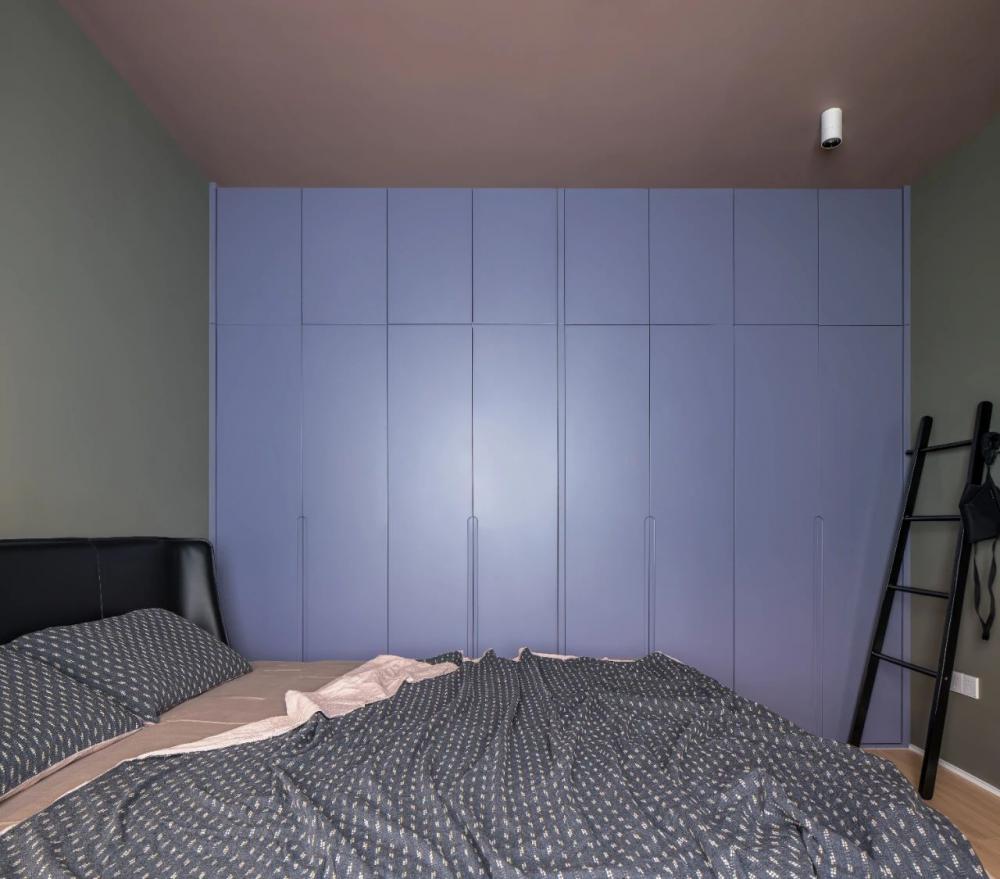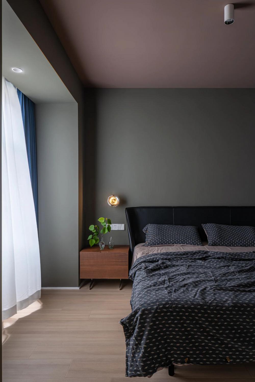 設(shè)計策略:1. 取消客廳陽臺并入到客廳,最大程度的滿足客廳區(qū)域的的空間尺度。2. 拆除次臥的墻體,改造成金屬框玻璃門+窗簾。3. 改變了主臥開門的位置,拉長了兩間臥室之間的距離感。4. 右移了衛(wèi)生間區(qū)域,把原始衛(wèi)生間干區(qū)的位置,給到了餐廳空間。5. 把原廚房的生活小陽臺給到了衛(wèi)生間,自此形成一個相對大尺度的衛(wèi)生間。 客廳合并了原獨立陽臺后,大尺幅落地窗把采光最大程度地引入室內(nèi)。 餐廳的背后(視線最左側(cè))是一組頂天立地的儲物柜,旁邊墻體嵌入了一個金屬盒,可以隨手放置鑰匙,手機,小包包等,功能與美學巧妙融合。 選用了兩種寬窄度的磚進行拼接來增加地面的細節(jié)感。全房踢腳線亦是采用了20mm的白色極窄實木腳線。 PS:地磚用原始600*600規(guī)格的正方形磚,加工成了120*600和150*600兩種規(guī)格的條形磚。 選用了兩種寬窄度的磚進行拼接來增加地面的細節(jié)感。全房踢腳線亦是采用了20mm的白色極窄實木腳線。 區(qū)別于傳統(tǒng)客廳沙發(fā)面對電視墻的布局手法,圍合式的客廳布局更符合當下青年群體在家聚會和情感交流的需求。 客廳左側(cè)的主墻面設(shè)置成一組儲物柜,充分滿足剛需戶型對于收納的需求,懸挑設(shè)計方便清潔。突出的旁板設(shè)計勇于打破常規(guī),增添細節(jié)感。 客廳減少了吊頂方面的工作,有限的吊頂結(jié)構(gòu)一是為了解決客廳風管機的放置,二是削弱梁體在客餐廳中間進門瞬間直指眼球的不適感。 墻面整潔有序地分布著的幾何體塊,呼應(yīng)玄關(guān)左側(cè)的金屬功能盒和電視墻的長條金屬電視柜,材質(zhì)沖突達到小小的構(gòu)件樂趣。 角落里的高腳落地燈安靜地散發(fā)著她的光芒,燈下的絨面沙發(fā)更顯柔軟。這一切的軟裝陳設(shè)都在素凈的基調(diào)下盡顯隨性自由的空間氛圍。 電視墻是客廳相對削弱的功能載體,濃郁的色彩與素雅的軟裝形成鮮明對比。 木制與金屬的交相輝映,棱角分明的金屬體塊與30mm半圓線條的有機融合。比起電視背景墻,我更愿意稱之為是客餐廳裝飾畫的小型陳列區(qū)。 餐廳和兒童房之間采用金屬框玻璃門+窗簾,既保證隱私性,又讓兩個空間緊密聯(lián)系了起來,互相擴充空間的視覺尺度,充當彼此的背景板。 主臥的門被分布在了客廳的另外一邊,縮短主臥和客廳距離的同時,擴大了主臥內(nèi)部的儲物容量,又能跟次臥保持更獨立的空間感受。 深色的臥室內(nèi)部和客廳的白凈形成鮮明對比,兩種不同的色系場域,表達著生活里兩種截然不同需求。 輕松兼規(guī)整感是衛(wèi)生間給我們的第一視覺印象,墻磚選用了一款米色的條形磚進行鋪貼,干區(qū)地面采用了不同規(guī)格尺度的木紋磚。 衛(wèi)生間整合了家政區(qū),洗漱、清洗臟衣,一氣呵成,動線更加便利。