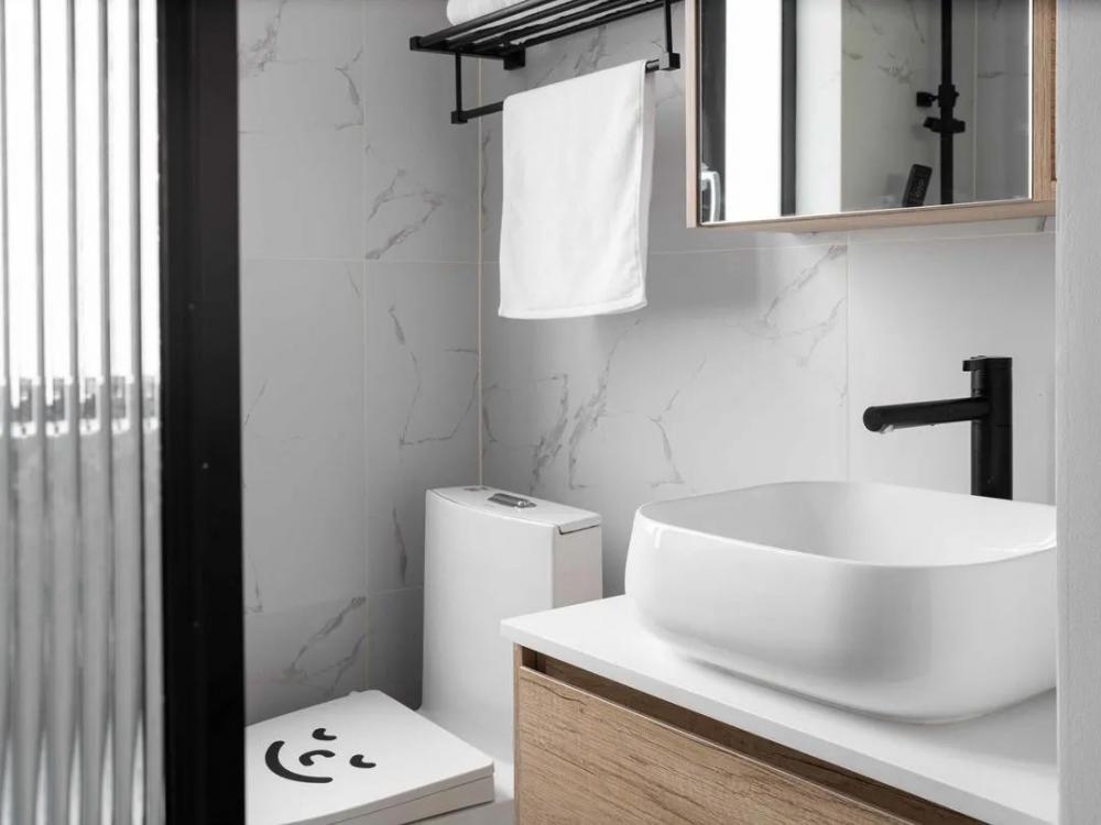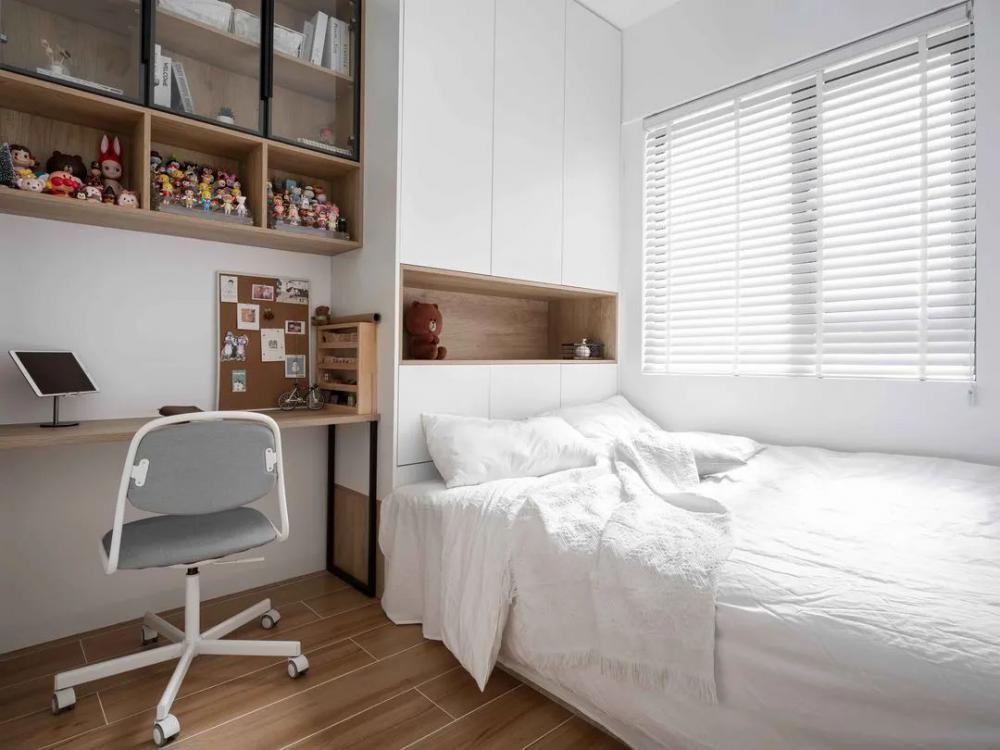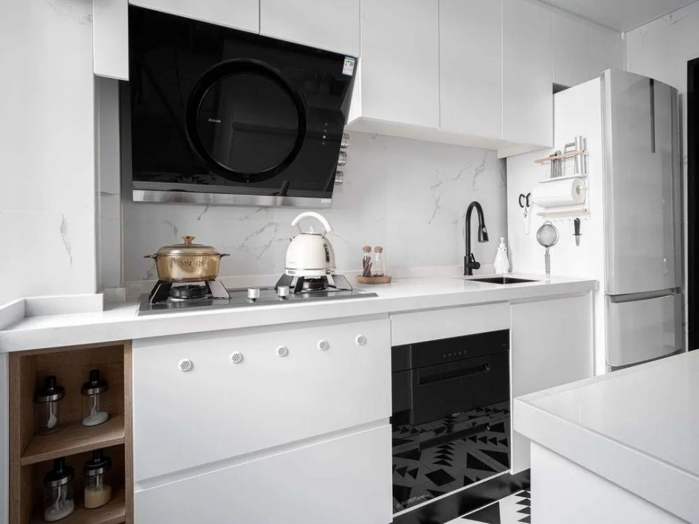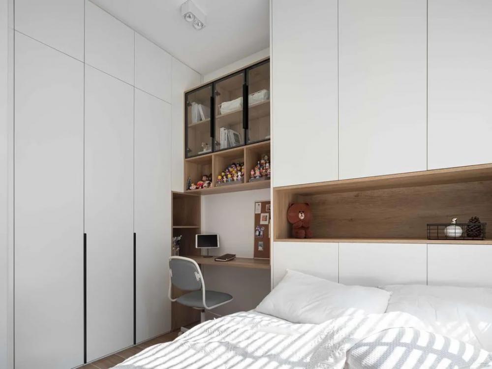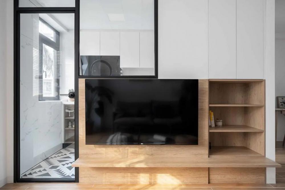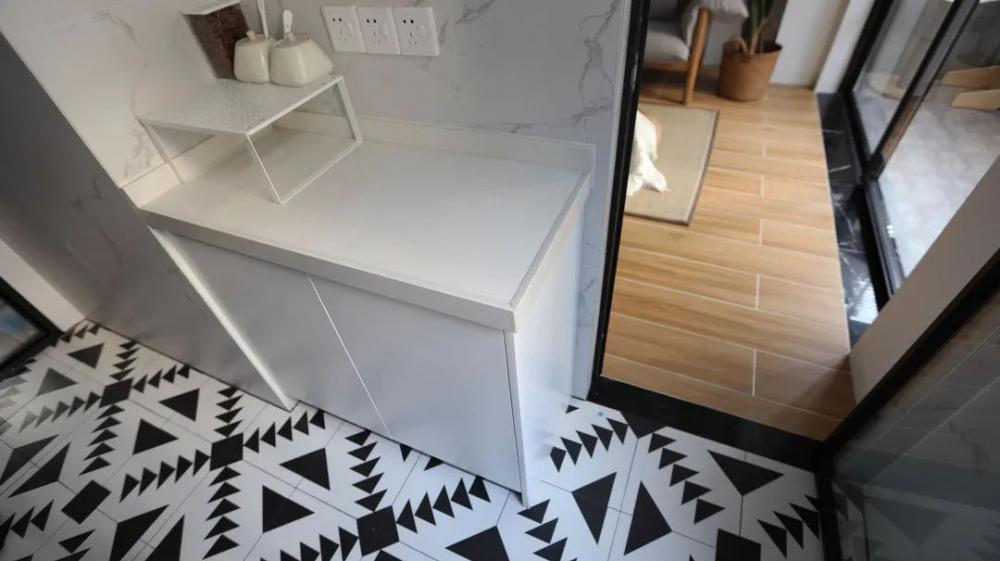 這次要分享的是一套64㎡小戶型案例,屋主是一對90后夫妻,面對新房裝修,夫妻二人意見統(tǒng)一,希望簡潔溫馨實(shí)用,每一處空間都能利用好,看看最終成果吧! 平面布置圖,設(shè)計(jì)改造過程: 1、改變主臥進(jìn)門方向,避開直對入戶門; 2、拆除主臥與次臥之間隔墻,背靠設(shè)計(jì)衣柜; 3、改變廚房進(jìn)門方向,避免正對衛(wèi)生間門; 4、廚房靠過道一側(cè),利用玻璃裝飾,引入光線提高過道采用。 進(jìn)門一整排儲物柜,極大的提高了小戶型收納空間。一體嵌入式設(shè)計(jì),更整齊美觀。大面積白色門板,簡潔不凌亂,空間更明亮。簡約的餐桌椅子,細(xì)長腿占用空間小,增加通透感。 電視墻設(shè)計(jì)很巧妙,節(jié)省空間也不缺乏收納。新開窄邊框門窗,增加空間通透性,讓原本緊湊的客廳不那么擁擠??蛷d舍棄茶幾和電視柜是個不錯的選擇,空間不擁擠活動范圍大。 廚房白與黑的撞色,簡單干凈不失純粹。合理的布局增加了廚房可操作性,吊柜尺寸掌控到位,油煙機(jī)與冰箱擺放后,不影響美觀。幾何圖形地磚,增加了廚房活躍感。 主臥簡潔舒適,床頭淺灰色背景內(nèi)斂雅致,簡易木質(zhì)家具溫潤自然,增加清新通透感。百葉簾很好的取代了窗簾,靈活調(diào)節(jié)室內(nèi)光線。 小臥室,榻榻米+書柜+衣柜+書桌,提高空間利用最大限度增加收納空間。榻榻米可以當(dāng)床使用,立柜中間鏤空設(shè)計(jì)能放置物品,取代床頭柜節(jié)省空間。 衛(wèi)生間整潔明亮,窄框推拉門+長虹玻璃隔斷,鏡柜設(shè)計(jì)一物兩用,節(jié)省很多空間。白色的臺上盆,搭配黑色水龍頭,簡潔時尚太好看了。 陽臺除了洗衣晾曬之外,還兼顧著喵星人的活動空間,攀爬和乘涼設(shè)施齊全。百葉簾取代窗簾,靈活調(diào)節(jié)室內(nèi)光線,也能很好的保持私密。