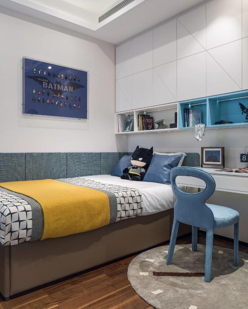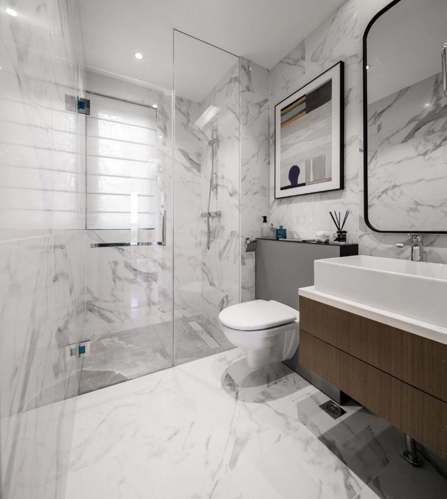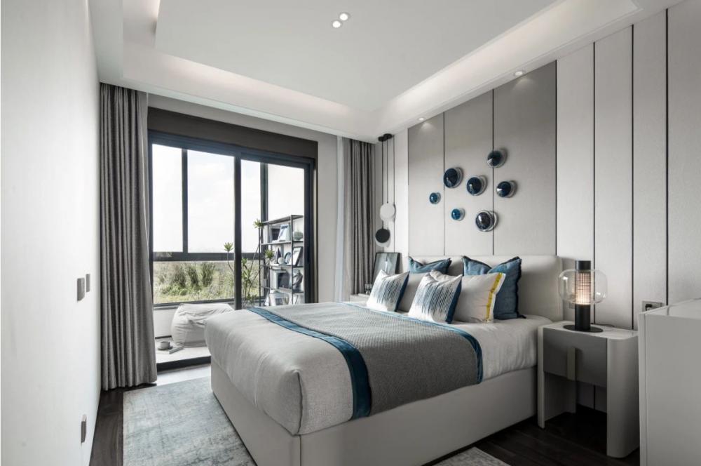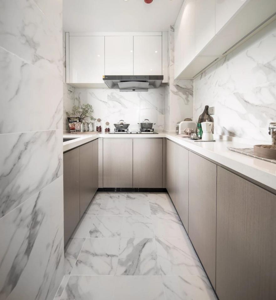 這個房子是套內(nèi)面積57平米,整體設(shè)計以年輕舒適的現(xiàn)代風(fēng)為設(shè)計主題,布置上精致優(yōu)雅的軟裝擺設(shè),點綴上精致華麗的細(xì)節(jié)設(shè)計,營造出一種優(yōu)雅端莊的高檔氛圍感。 ▲餐廳處于進(jìn)入玄關(guān)后的第一個空間,整體現(xiàn)代范的高級灰設(shè)計,搭配上優(yōu)雅精致的家居軟裝布置,營造出一種華麗優(yōu)雅的精致與檔次感。 ▲餐廳背景墻以灰色硬包的質(zhì)感,中間加入黑色線條裝飾,掛著一幅圓形的彩色珠圖案裝飾畫,布置現(xiàn)代華麗的石材臺面餐桌,還有皮質(zhì)的餐椅,讓空間顯得更加溫雅華麗。 ▲廚房也是雅白的墻面地面,布置U形操作臺,讓做飯空間也更加時尚舒適而自然。 ▲餐廳與客廳空間的風(fēng)格保持一致,客廳采取無主燈的設(shè)計,天花四周加入燈帶的裝飾,布置現(xiàn)代優(yōu)雅的家具與硬裝設(shè)計,帶來的是溫馨舒適的高級氣質(zhì)。 ▲靠窗陽臺打通后,以金屬質(zhì)感把門洞裝飾起來,陽臺側(cè)邊的置物架,擺上清新的多肉盆栽,也是顯得更加清新自在。 ▲休閑陽臺布置懶人沙發(fā)椅與收納架,也是顯得更加生機舒適。 ▲兒童房空間較小,布置榻皮藝床+書桌組合,書桌上方還有吊柜書架組合,加入藍(lán)色與黃色的的搭配,讓空間顯得更加自然舒適。 ▲臥室床頭墻也是硬包的造型,中間部分深灰色的設(shè)計還掛了一組獨特的藍(lán)色鈕扣狀裝飾。 ▲衛(wèi)生間以雅白的墻面地面,玻璃作為干濕分區(qū)的隔斷,布置簡約時尚的洗手盆,帶來一個簡潔時尚的衛(wèi)浴空間。