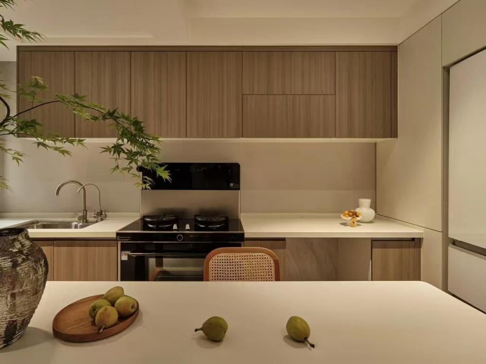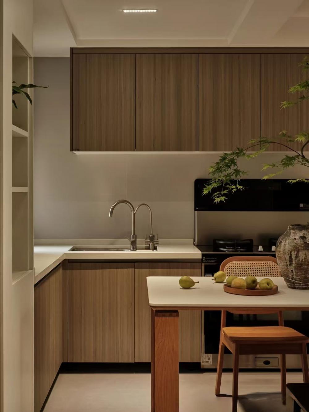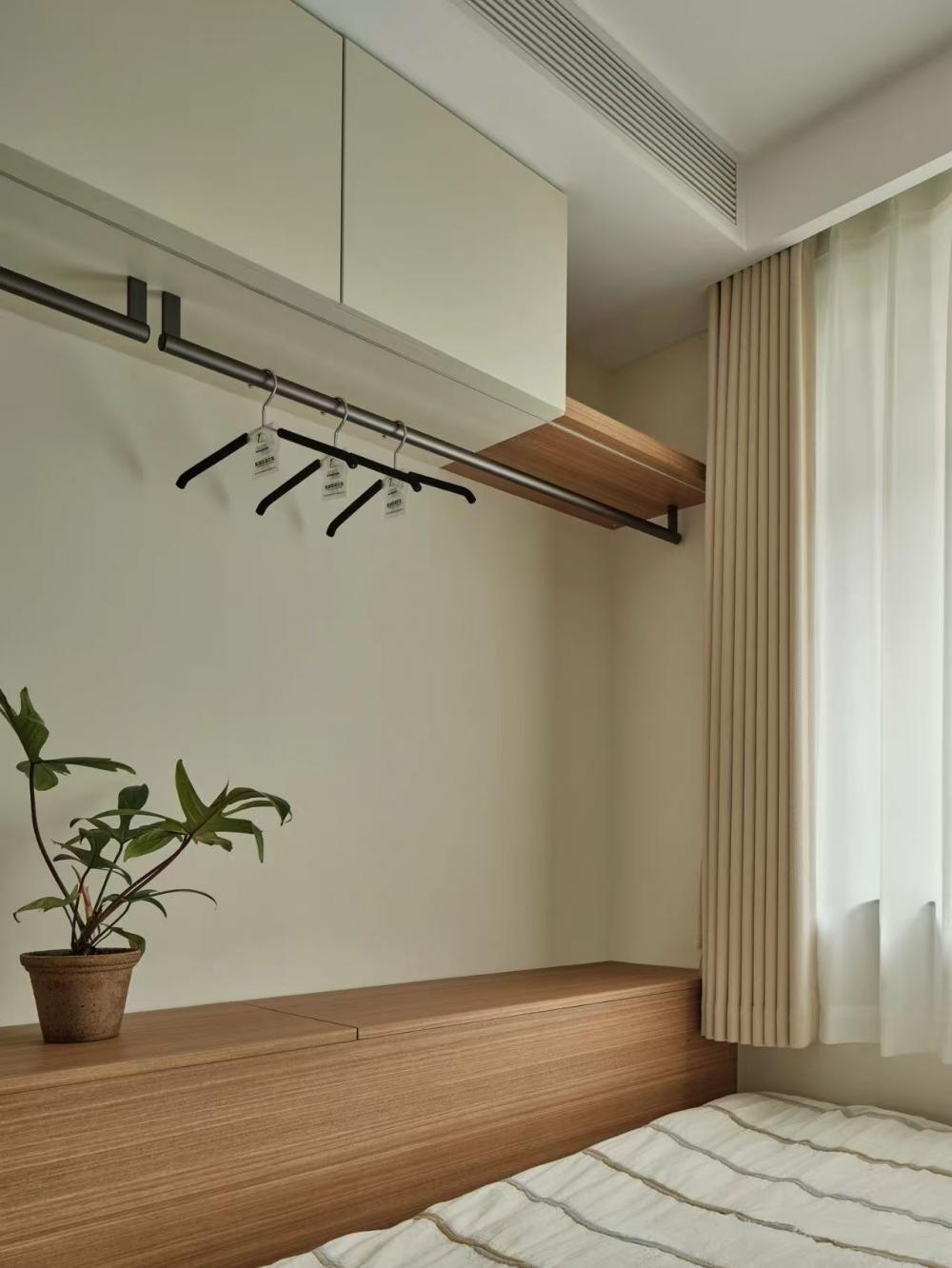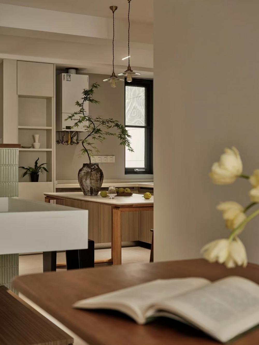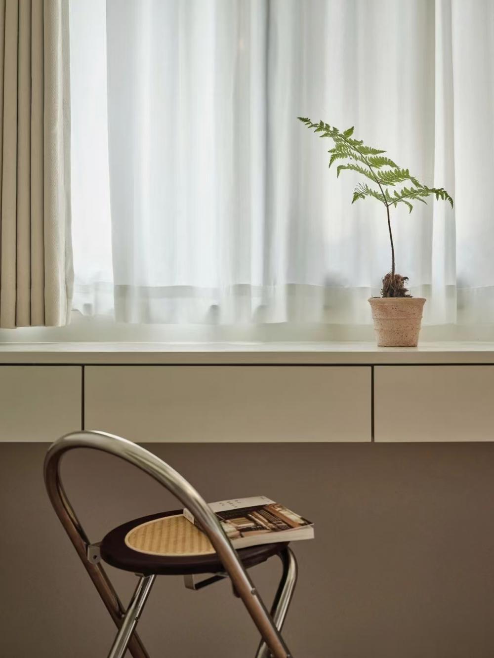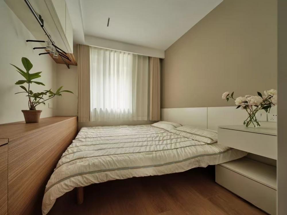 家的營造并非簡單的裝飾和審美提升,更深層次的內(nèi)核是體察每個(gè)家庭具體的生活模式,以及塑造家庭成員對(duì)未來生活的居住期望。利用原陽臺(tái)面積,巧妙安置衣柜與書桌,爬梯床下定制單人床,實(shí)現(xiàn)空間的縱向利用。如何將55㎡“老破小”打造成一個(gè)適宜每位家庭成員的居住空間,是亟待解決的問題。 將最佳采光位置留給大寶的學(xué)習(xí)區(qū),弧形門洞的設(shè)計(jì)不僅柔化了空間線條,更營造出溫馨和諧的氛圍。外掛吊軌移門省空間又實(shí)用,嫩綠長虹玻璃邊框宛如春日里的一抹清新,為學(xué)習(xí)氛圍注入生機(jī)與活力 利用原陽臺(tái)面積,巧妙安置衣柜與書桌,爬梯床下定制單人床,實(shí)現(xiàn)空間的縱向利用。 設(shè)計(jì)師以“S”型上下布局打造二寶房間,充分挖掘有限空間潛力,滿足不同成長階段需求。 探索與趣味并重,爬梯、洞口、側(cè)窗設(shè)計(jì)豐富互動(dòng)體驗(yàn),激發(fā)孩子好奇心,同時(shí)優(yōu)化自然采光。 南臥室以中軸線劃分公私區(qū)域,打破傳統(tǒng)格局,集客廳、書房、親子互動(dòng)、收納、家政等多功能于一體,形成獨(dú)特的生活方式。 業(yè)主的閱讀習(xí)慣在此傳承,成為全家精神的匯聚地。 設(shè)計(jì)師拆除廚房與玄關(guān)間隔墻,光線流通,視野開闊,入戶即享敞亮空間感。 餐廚一體設(shè)計(jì)提升功能效率,暖白與木色搭配營造輕松自由氛圍,讓烹飪與用餐成為家庭共享的歡樂時(shí)光。 借助公共區(qū)域?qū)崿F(xiàn)衛(wèi)浴二分離,加長臺(tái)盆與雙龍頭設(shè)計(jì)提升使用效率,同時(shí)拓寬通往餐廚區(qū)的視覺通道,進(jìn)一步改善采光。隱藏式吊軌推拉門嵌入玄關(guān)鞋柜,節(jié)省空間的同時(shí),復(fù)古黑色金屬門與霧面玻璃彰顯簡約格調(diào)。 主臥朝北,設(shè)計(jì)師通過門外擴(kuò)微調(diào),盡可能增加室內(nèi)面積。整面儲(chǔ)物衣柜中間留白,避免擁堵感,通透明亮。床尾儲(chǔ)物柜上翻蓋設(shè)計(jì),最大化利用空間,打造寧靜舒適的睡眠環(huán)境。