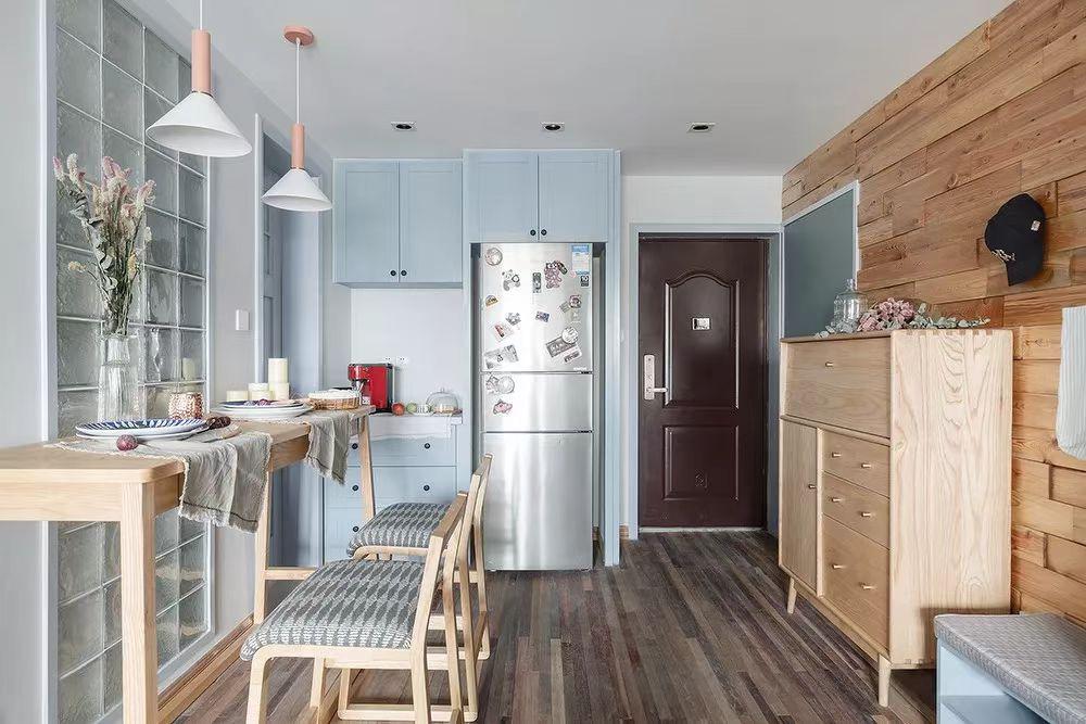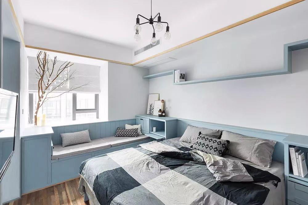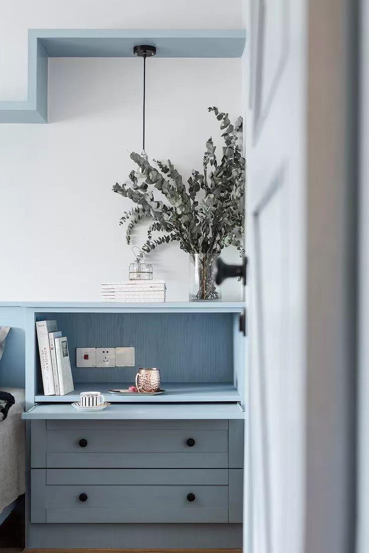 72㎡小戶型北歐混搭風(fēng)藍(lán)灰主調(diào),陽(yáng)臺(tái)榻榻米休閑兼收納