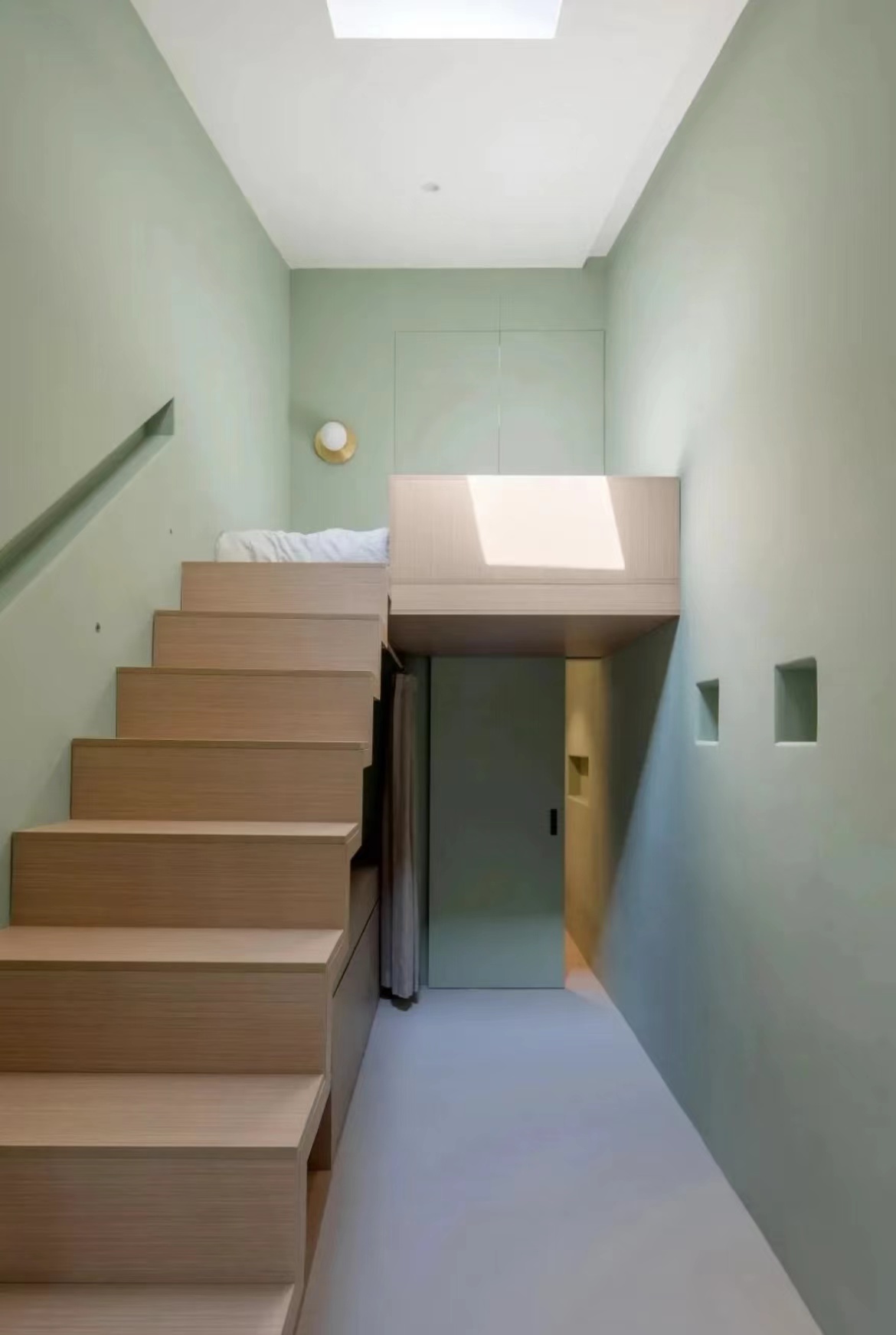 衛(wèi)生間利用一面墻做一些收納,從主衛(wèi)淋浴后可以直接回到自己的房間或公共區(qū)域,非常方便。