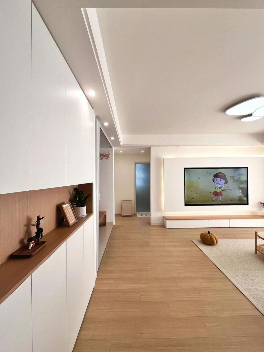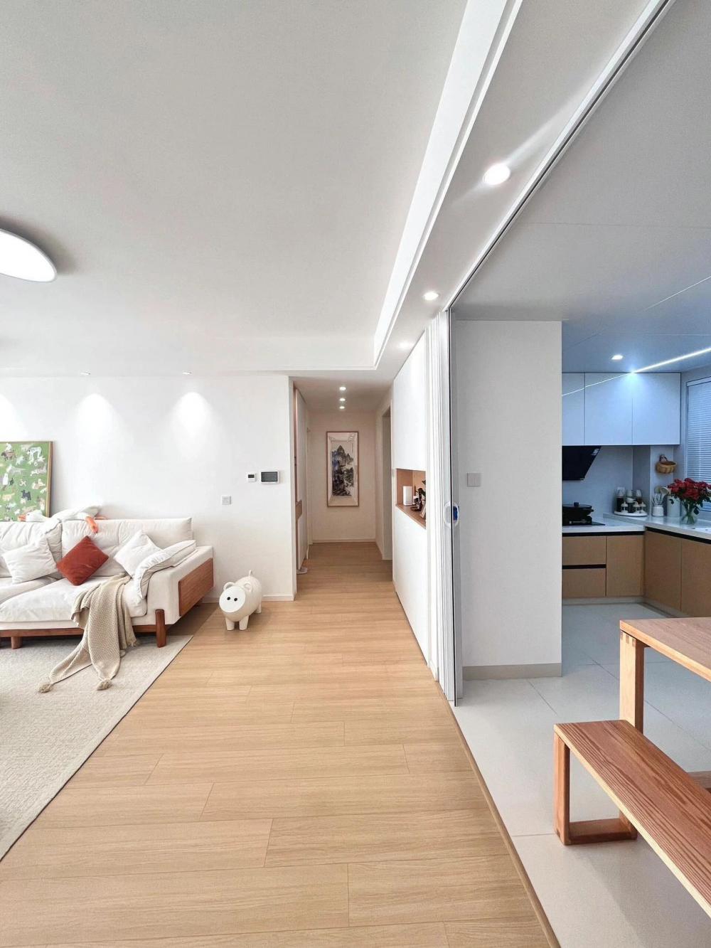 這房子一看就很有生活氣息!弧形拱門+木地板的搭配,真的把空間感拉滿了?不過打掉陽(yáng)臺(tái)推拉門這個(gè)操作,確實(shí)有人愛有人恨。 ?? 點(diǎn)評(píng)亮點(diǎn): 弧形拱門:誰能拒絕一個(gè)顏值在線的拱門呢?瞬間提升空間柔和感,家里氛圍立馬變得浪漫溫馨~但要提醒一句,南方的小伙伴注意防潮,木地板+陽(yáng)臺(tái)如果沒處理好,可能分分鐘變“水床”?? 懸浮電視墻:懸浮設(shè)計(jì)感確實(shí)在線,電視柜直接落地,簡(jiǎn)潔不累贅,家里娃娃車、小狗窩都能塞進(jìn)去,靈活又實(shí)用!不過預(yù)算緊的話,也可以直接省掉懸浮部分,簡(jiǎn)潔照樣耐看~ 配色方案:菱花白+奶茶色,妥妥的溫柔治愈風(fēng)~但奶茶色窗簾選深一點(diǎn)的話,遮光效果會(huì)更好,既實(shí)用又不會(huì)過時(shí)?? ?? 可以再優(yōu)化的小細(xì)節(jié): 軟裝預(yù)算8W:軟裝這塊的預(yù)算分配其實(shí)可以更靈活,比如可以先買基礎(chǔ)款,把預(yù)算集中在大件家具,燈光和地毯這樣的氛圍感小物后期慢慢加~別問,問就是錢包感受最明顯?? 廚房和客廳打通:廚房打通確實(shí)很香,但如果家里經(jīng)常做飯,油煙問題要考慮清楚,裝個(gè)玻璃隔斷,既能保持通透又不會(huì)讓客廳變油膩膩~ ?? 這種房子雖然不追求“豪華感”,但溫馨感直接拉滿,畢竟家是住出來的,舒服才是王道!