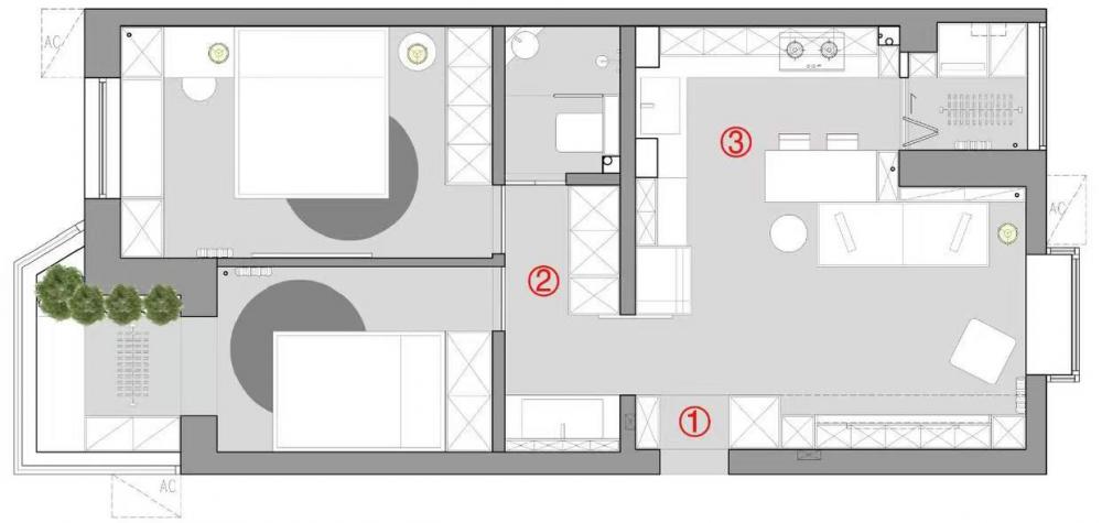 本期分享的這套51㎡的小家?guī)缀跫R了所有老破小的缺陷:沒玄關(guān)、廚房窄小、衛(wèi)生間既小又暗、儲物空間不夠... 雖然是有很多的問題存在,但戶型方正,只要稍加設(shè)計,還是有挽救的機會的。所以業(yè)主在與設(shè)計師溝通后,希望在并不大動的前提下實現(xiàn)逆襲。 設(shè)計亮點: 入戶增加兩側(cè)柜體,打造進門玄關(guān)區(qū); 衛(wèi)生間干濕分離,并且增加過道儲物柜進行收納; 廚房打開做成開放形式,保證小空間的通透感。