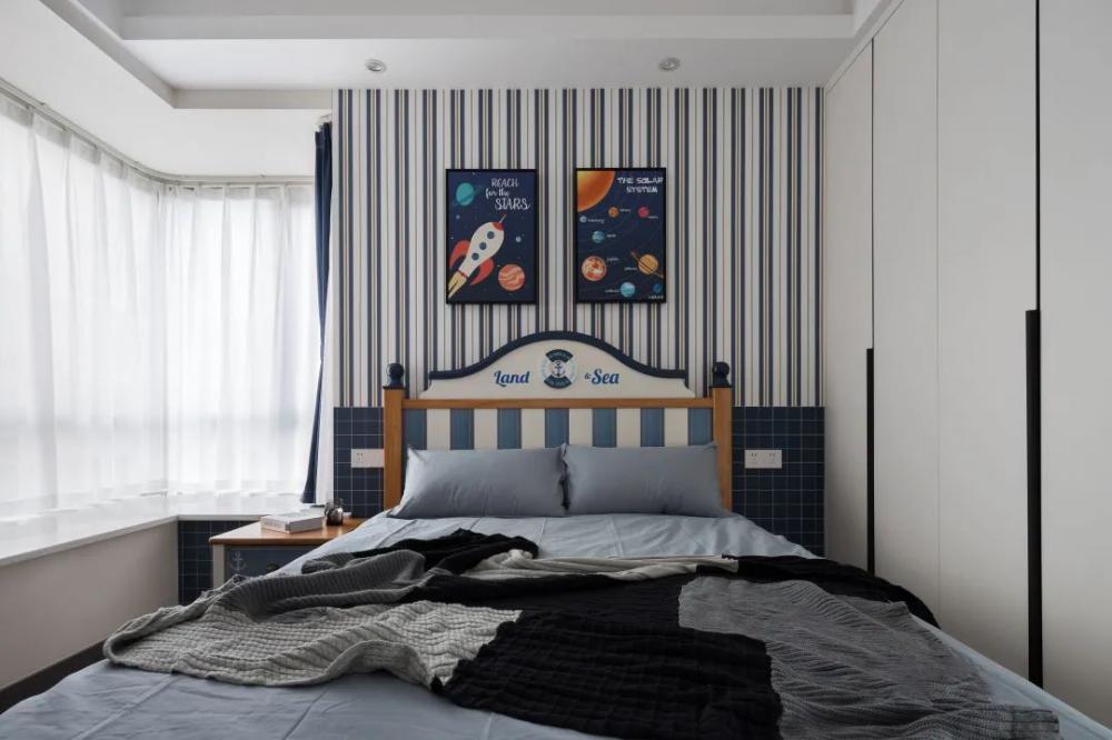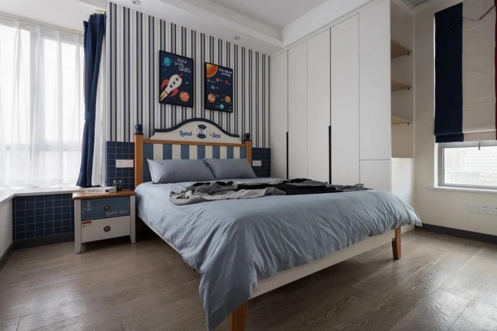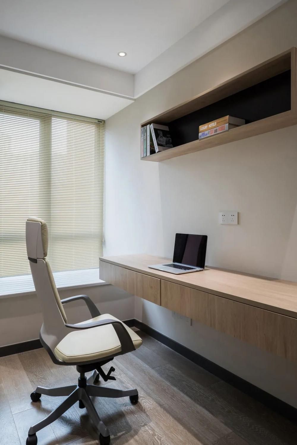 這是一套126平米的現(xiàn)代簡約風格裝修案例,整體空間現(xiàn)代大方的基礎,大面積加入低調(diào)高級的灰色元素,加入溫馨自然的軟裝布置,營造了一個自然愜意的居住空間。 ▲客廳現(xiàn)代風的基礎,天花采取無主燈的吊平頂設計,灰色沙發(fā)墻與布藝沙發(fā)、地毯等軟裝,電視墻這是木質(zhì)感定制的設計,加入黃色皮沙發(fā)椅與毯子,帶來一種簡約而又有活力的空間氣息。 ▲電視墻以木飾面的定制,中間留空電視機的壁掛安裝位置,裝上黑色懸空的電視柜,右側(cè)是灰色的收納柜+書架展示架,整個電視墻給人一種現(xiàn)代簡約而實用的高級效果。 ▲沙發(fā)墻的掛畫以射燈烘托,布置黃色的毯子,沙發(fā)旁邊擺一個小邊幾,整個空間充滿了簡約優(yōu)雅與活力感。 ▲電視墻的灰色定制柜右側(cè)是過道空間,灰色地磚與墻面空間,右側(cè)墻面掛了三幅小尺寸的裝飾,使得過道空間也簡潔舒適。 ▲餐廳左側(cè)是廚房門,右側(cè)定制一個入墻式的餐邊柜,中間擺上黑白配的餐桌+灰色皮藝餐椅,簡潔時尚與現(xiàn)代的氛圍格調(diào)充滿了整個餐廳空間。 ▲廚房門口旁邊的墻面掛著一個黑色的時鐘,在現(xiàn)代簡潔的餐廳空間下,呈現(xiàn)出一種自然舒適的高級設計感。 ▲廚房以灰色的地面與墻面磚,裝上原木色的櫥柜+白色的操作臺面,窗戶裝著百葉簾,為主人營造了一個簡約舒適而明亮清新的烹飪空間。 ▲玄關左側(cè)是定制鞋柜,右側(cè)是抬高的地臺,針對大門的過道裝了一道黑色格柵屏風,使得空間感舒適優(yōu)雅而又私密。 ▲抬高的地臺空間作為休閑與收納空間,功能豐富又實用。 ▲臥室以咖色的墻面空間,地面是木地板的材質(zhì),擺一張灰藍色的皮藝床、鋪設灰藍的床單,布置出一個現(xiàn)代舒適的臥室空間。 ▲咖灰色調(diào)的床頭墻上,掛上兩幅黑白調(diào)的裝飾畫,左右側(cè)黑色床頭柜上裝著黑色小壁燈,整個空間簡潔而不失現(xiàn)代設計感。 ▲書房裝上懸空書桌與書架,擺上一張休閑辦公椅,還有飄窗與百葉簾的設計,為主人打造了一個實用舒適的書房區(qū)域。 ▲書房裝上懸空書桌與書架,擺上一張休閑辦公椅,還有飄窗與百葉簾的設計,為主人打造了一個實用舒適的書房區(qū)域。 ▲兒童房的床頭墻貼著藍白豎紋的墻布,掛上兩幅太空主題的裝飾畫,擺上一張兒童床+灰色床單,使得兒童房空間也是顯得童趣舒適而清新愜意。 ▲兒童床旁邊的定制衣柜采取通頂?shù)脑O計,側(cè)邊還加入了開放格設計,提供了靈活方便的收納設計。 ▲衛(wèi)生間里面是灰色的地磚與墻磚,,壁掛馬桶后方做了一個小墻臺,裝上灰木色浴室柜+黑色洗手盆,還有圓形的浴室鏡,整個衛(wèi)浴空間顯得簡約精致而實用時尚。 ▲另一個衛(wèi)生間也是采取同樣的灰色瓷磚+灰木色浴室柜設計,不同的布局也搭配出了類似的空間氛圍。