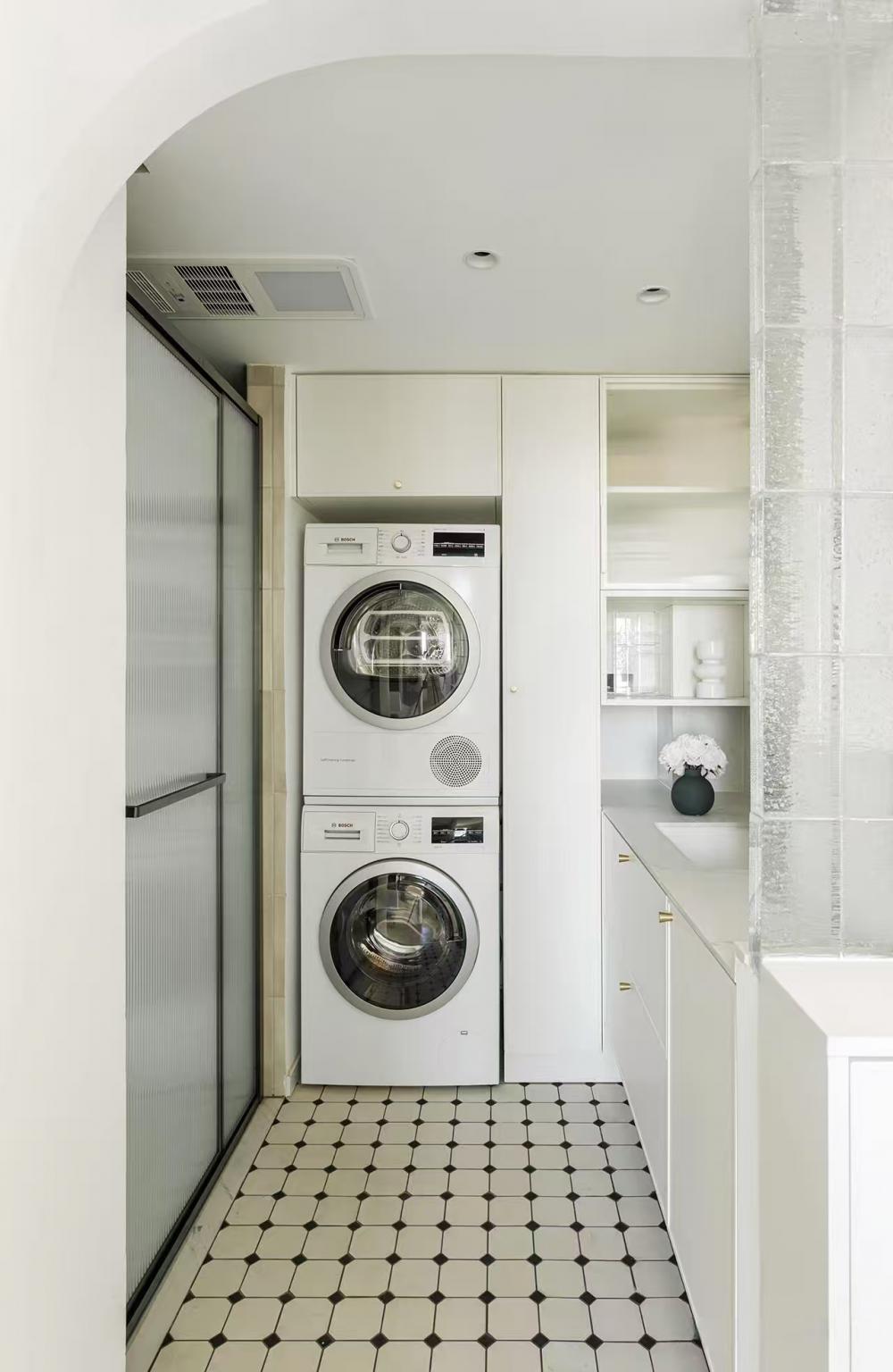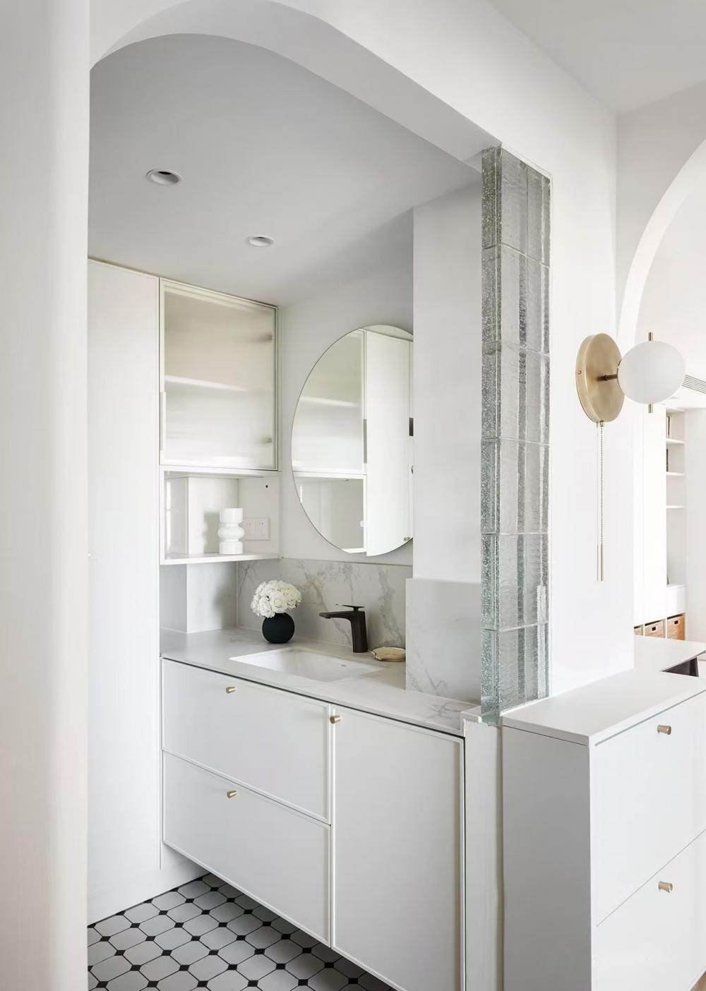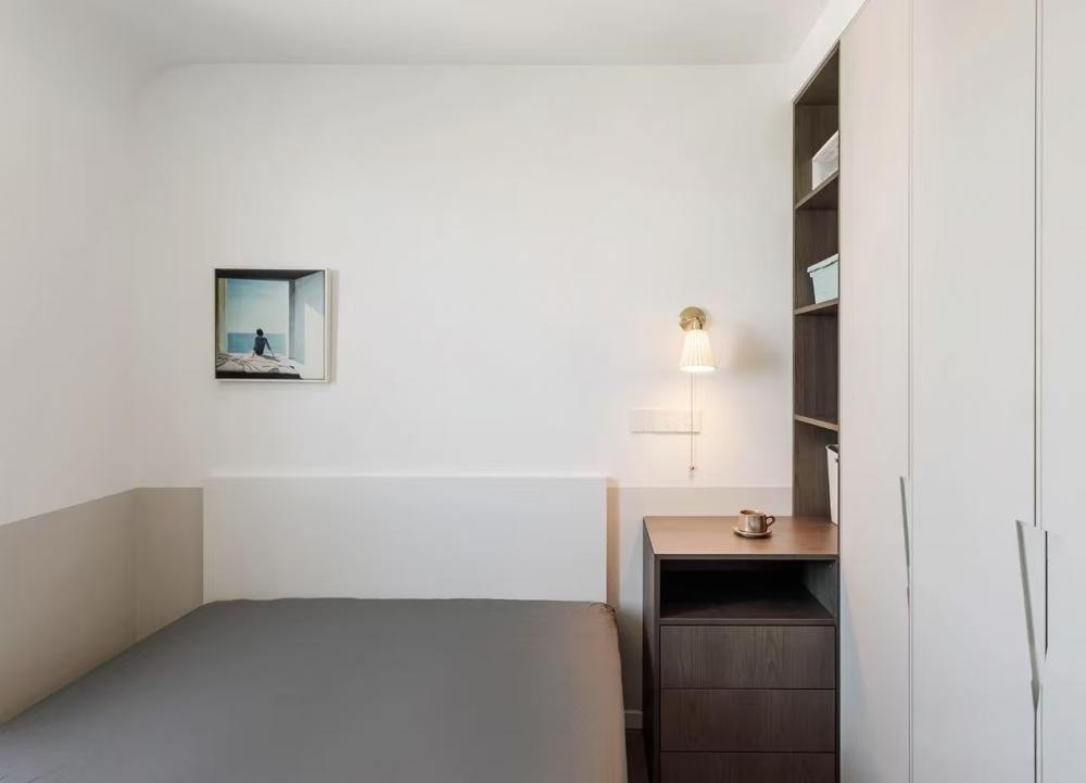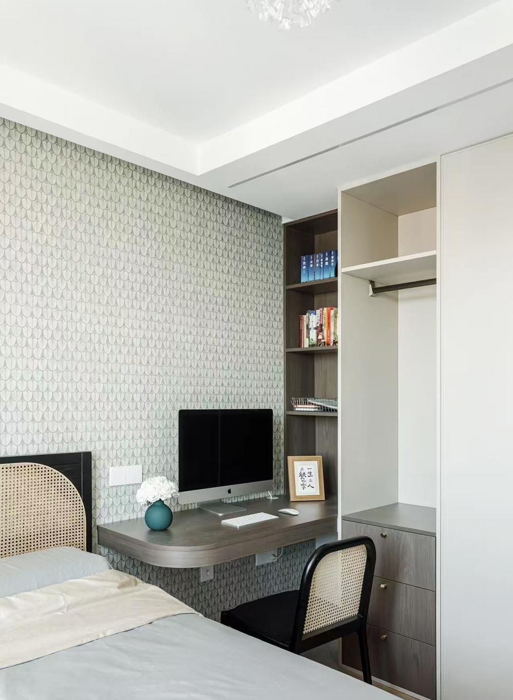 今天要給大家介紹的是一套三居,套內(nèi)63㎡,有3間明窗的獨立臥室,有開敞的公共區(qū)域,算是小戶型三居里的佼佼者了吧,槽點都集中在了入戶區(qū)域,原戶型缺點:玄關(guān)的寬度只有1.1米,無法做正常深度的鞋柜;衛(wèi)生間無窗,而且沒有做干濕分離。 戶型改造: 1、把衛(wèi)生間門左移,再進行合理布局;2、向衛(wèi)生間濕區(qū)借進深(25厘米),讓玄關(guān)擁有了一組45厘米深、1米寬的大收納柜。 改造后的玄關(guān),因為有了正常深度的大收納柜,滿足一家5口鞋包、雜物的收納,功能得以完整。玄關(guān)柜對面的全身鏡方便出門時整理衣冠,旁邊的留言板對于早出晚歸的雙職工家庭來說,是很溫暖的存在。 明亮的衛(wèi)生間干區(qū),有2米長!非常寬敞舒適,2人同時洗漱完全沒問題。 衛(wèi)生間要容納一家5口人各自的洗護用品、臟衣籃、囤貨的紙品等等,設(shè)計時非常注重收納。濕區(qū)選擇了手工窯變磚來鋪貼墻面,和干區(qū)的玻璃磚、玻璃門一樣,都有光影流轉(zhuǎn)的效果,生動不壓抑~ 小戶型就需要見縫插針的收納,衛(wèi)生間右側(cè)還做了一組半高翻斗薄柜,與另一側(cè)柜體齊平。 餐廳位于全屋的中心,在餐邊柜的中間設(shè)置了水吧,方便家里人煮水喝茶。 柜體中間貼了和淋浴房磚同一系列的手工磚,用來隔絕煮水時的水蒸氣,保護墻面。 客廳的收納柜與餐邊柜連為一體,全都選擇白色,體量感很輕,在滿足收納的同時,不會產(chǎn)生壓抑感。投影取代電視,需要時放下,更符合屋主使用習慣。 收納柜靠近陽臺的一側(cè)做成了開放格,放寶寶愛看的繪本,屋主夫婦最近想讀的書。 雖然已經(jīng)有了干衣機,但還是根據(jù)屋主需求在陽臺設(shè)置了一個晾曬區(qū),可以晾曬襯衫、羊絨衫這些比較嬌貴的衣物。 主臥面積不大,屋主偶爾有加班的需求,需要有一張舒適的寫字臺,因此選擇的是1.5米的床。藤編的床頭極具呼吸感,顯得輕盈柔軟。 主臥設(shè)置L型衣柜,留出了一小塊半開放區(qū)掛次凈衣。床尾放上美美的斗柜,陽臺晾好的衣服,收納進來很方便。 次臥現(xiàn)在是老人和孩子一起住,顏色干凈雅致。床對面安裝了電視,老人休息時看。 兒童房現(xiàn)在暫時作為屋主夫婦的書房,布置好了書桌、書架和衣柜。 雙層床等到小朋友愿意獨立睡時再買,保留一些靈活度。 廚房臺面從一字形改成了U字型,提高利用率;設(shè)置高低臺,洗菜不彎腰,更加人性化。