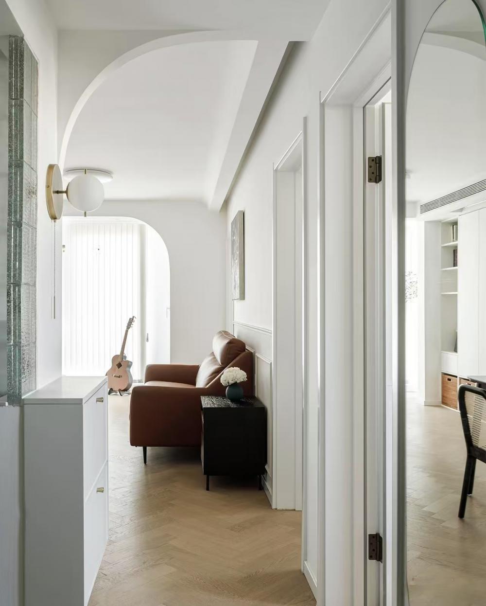 63㎡簡約三居,改動一面墻,拯救“長滿鞋”的極窄玄關(guān)!