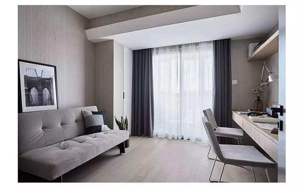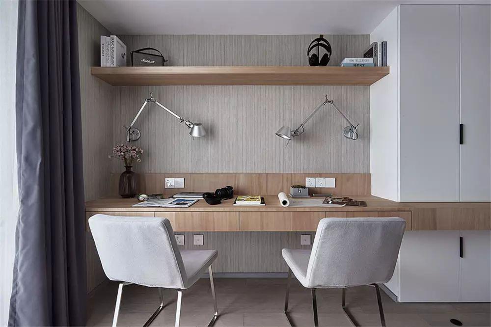 今天分享的是一套建筑面積84平米的現(xiàn)代風(fēng)小戶型二居室案例,設(shè)計師以原木風(fēng)的家具、淺色調(diào)的軟裝來打造這樣一個輕松、舒適的小窩,客餐廳是橫廳的格局,做了開放式的布局,顯得簡潔而又大方。 走過入戶玄關(guān)之后就到了客餐廳空間,木質(zhì)與白色結(jié)合的收納款電視背景墻,底部還加上了大理石元素,顯得更加精致、大氣。 靠窗的地方做了一整排的飄窗柜,也能作為客廳沙發(fā)的補充??蛷d和餐廳是一個橫廳的格局,兩者之間不做隔斷,顯得格外的寬敞。 餐廳和沙發(fā)之間留出一個小走道的空間,坐在飄窗上還能看看書、曬曬太陽,享受一個愜意的午后、周末時光。 餐廳的兩側(cè)都做了收納的設(shè)計,一側(cè)是到頂?shù)牟瓦吂?,另一?cè)是廚房櫥柜的延伸,冰箱也擺放在柜子的邊上,顯得更不會那么突兀。 廚房做了開放式的布局,通鋪灰色系的大理石瓷磚,搭配白色系的櫥柜,大理石瓷磚的獨特紋理非常帥氣,整個廚房顯得格外的寬敞、明亮。 臥室的床頭背景墻以灰黑色+兩側(cè)木飾面,木質(zhì)感的空間搭配側(cè)邊白色衣柜門,現(xiàn)代簡約的空間在木色與暖光的襯托下,帶來了溫馨的氛圍感。 由于屋主暫時沒有小孩,所以次臥是作為了書房來使用,靠墻做個雙人位的書桌,另一側(cè)擺放灰色的布藝沙發(fā),簡潔而又大方。 雙人位的書桌還連著到頂?shù)墓褡?,之后想要改成兒童房,也只需要把沙發(fā)替換成床就好了,收納和實用兼具。 衛(wèi)生間內(nèi)部空間不大,用浴簾和擋水條做了干濕分離,在淋浴區(qū)的轉(zhuǎn)角空間還做了隔板收納,方便擺放洗浴用品。