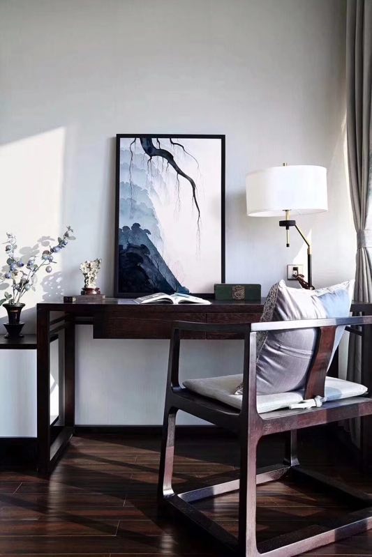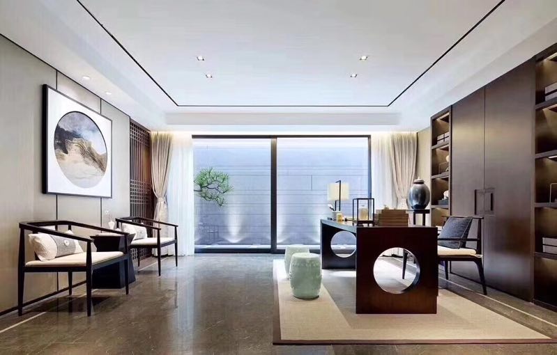 新中式在設(shè)計(jì)上延續(xù)了明清時(shí)期家居配飾理念,提煉了其中經(jīng)典元素并加以簡化和豐富,在家具形態(tài)上更加簡潔清秀,同時(shí)又打破了傳統(tǒng)中式空間布局中等級、尊卑等文化思想,空間配色上也更為輕松自然。
